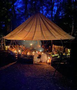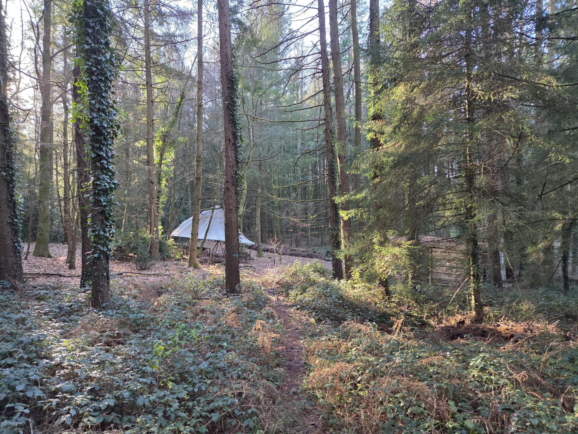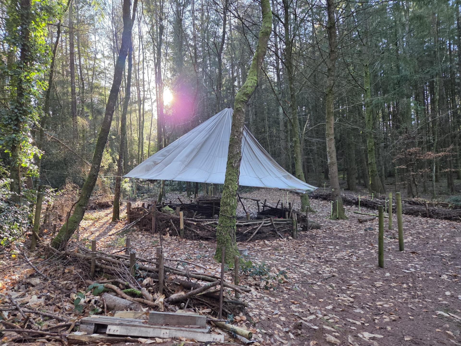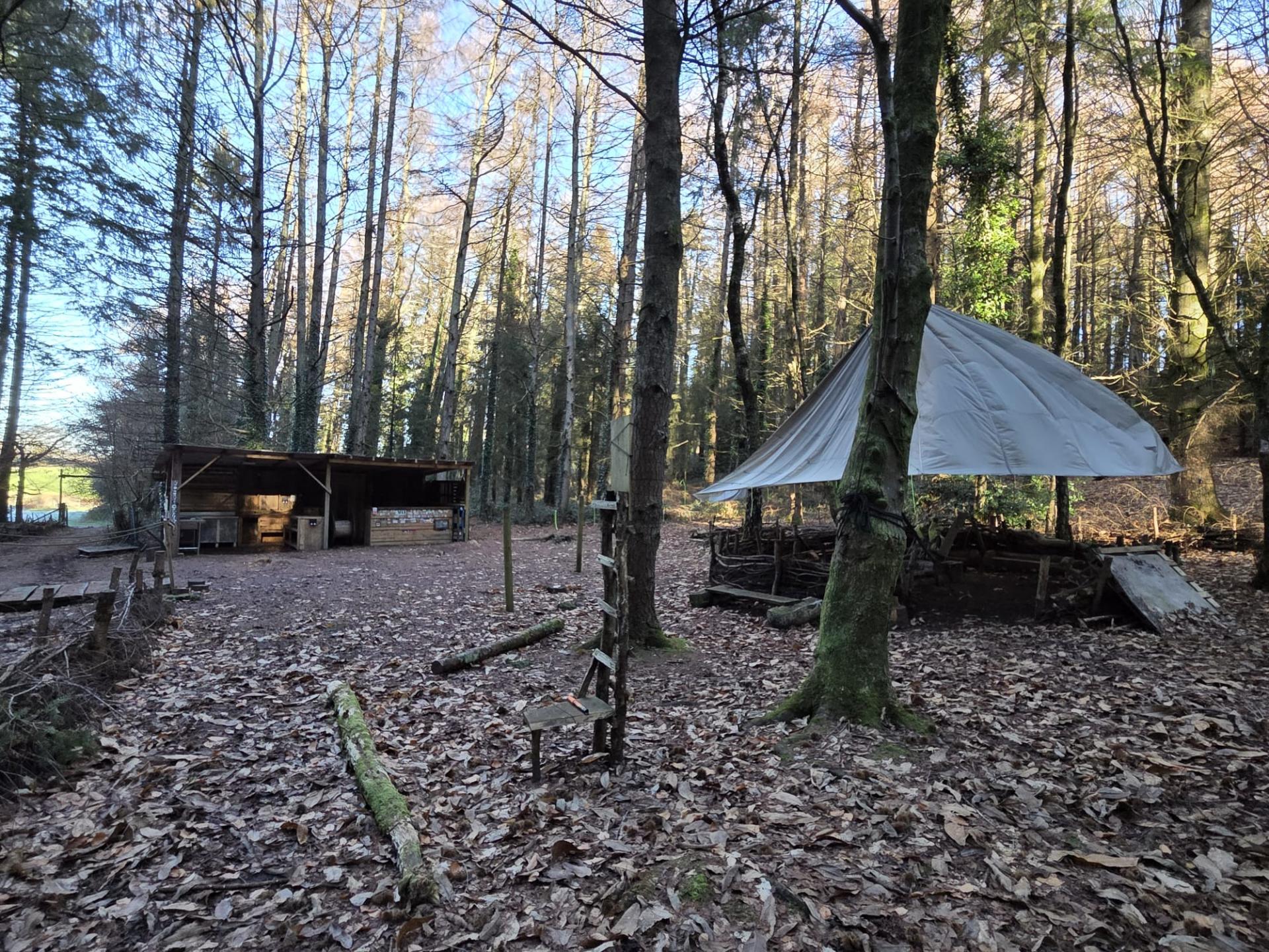The Woodland School can be used for daytime workshops or for camping holidays. Its a large space suitable for groups or large families. It has a woodland kitchen suitable for catering for groups and has a large firepit area with parachute. Its located just off pheasant path and only a minutes walk to the meadow. Its central location makes it a fantastic for exploring the rest of the site or for accessing the trekking routes that pass by the site.